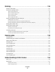 Contents Safety information...........................................................................13 Learning about the printer.............................................................15 Finding information about the printer........................................................................................................................15 Printer configurations.......................................................................................................................................