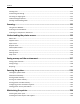 Contents 5 Ordering parts and supplies..................................................................................................................235 Using genuine Lexmark parts and supplies...........................................................................................237 Storing supplies.....................................................................................................................................237 Replacing parts and supplies......................................