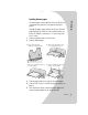 Improving print quality Installing or replacing your print cartridge 1 Make sure the Power light is On. Power light 2 Paper Feed light Raise the front cover. The print cartridge carrier moves to the loading position unless the printer is busy. Front cover Print cartridge carrier in the loading position 3 • • 8 • Chapter 2 • • Remove the old print cartridge. Store it in the print cartridge storage unit (see page 12) or dispose of it.