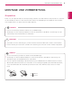 INSTALLATIONSVERFAHREN INSTALLATIONSVERFAHREN DEUTSCH 1 Öffnen Sie die Packung, und stellen Sie sicher, dass alle Zubehörteile im Lieferumfang enthalten sind. 2 Befestigen Sie den Standfuß am TV-Gerät. 3 Verbinden Sie ein externes Gerät mit dem TV-Gerät. HINWEIS Ihr TV-Gerät kann von der Abbildung möglicherweise leicht abweichen. yy Das OSD-Menü (am Bildschirm angezeigtes Menü) Ihres TV-Geräts kann sich leicht von dem in yy diesem Handbuch unterscheiden.