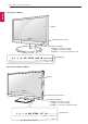 MONTĀŽA UN SAGATAVOŠANA LATVIEŠU (tikai modelim 24/27MT46*) Ekrāns Skaļruņi Tālvadības pults sensors Barošanas indikators yy yy yy Sarkans : Ja barošana ir izslēgta Izslēgts : Ja barošana ir ieslēgta Dzeltens : Ja darbojas energotaupības režīms Skārienpogas PIEZĪME yy Visas pogas ir skārienjutīgas — tās var izmantot, pieskaroties ar pirkstu. yy Strāvas indikatora lampiņu varat iestatīt kā ieslēgtu vai izslēgtu, galvenajās izvēlnēs atlasot IESPĒJA.