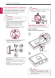 SU RINKI MAS IR PARUO ŠIMAS LIETUVIŲ K. 19MN43*, 24/27MT46* DĖMESIO 1 yy Kai prie TV tvirtinate stovą, padėkite TV ekranu žemyn ant pagalvėlės ant stalo arba plokščio paviršiaus, kad apsaugotumėte ekraną nuo įbrėžimų. DĖMESIO yy Neapverskite TV jį nešdami, jei jį laikote už stovo korpuso (arba stovo pagrindo), nes jis gali nukristi nuo stovo ir gali būti apgadintas arba gali sužeisti jus. yy Paveikslėlyje parodytas montavimo pavyzdys, todėl vaizdas gali skirtis nuo jūsų gaminio.