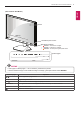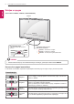MONTĀŽA UN SAGATAVOŠANA LATVIEŠU (tikai modelim 24/27MT46*) Ekrāns Skaļruņi Tālvadības pults sensors Barošanas indikators yy yy yy Sarkans : Ja barošana ir izslēgta Izslēgts : Ja barošana ir ieslēgta Dzeltens : Ja darbojas energotaupības režīms Skārienpogas PIEZĪME yy Visas pogas ir skārienjutīgas — tās var izmantot, pieskaroties ar pirkstu. yy Strāvas indikatora lampiņu varat iestatīt kā ieslēgtu vai izslēgtu, galvenajās izvēlnēs atlasot IESPĒJA.