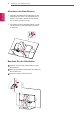 MONTAGE UND VORBEREITUNG Abnehmen des Standkörpers DEUTSCH DEU 1 Legen Sie den Bildschirm des Monitors mit der Vorderseite nach unten. Um den Bildschirm vor Kratzern zu schützen, decken Sie die Oberfläche mit einem weichen Tuch ab. 2 Verwenden Sie einen Schraubendreher, um die vier Schrauben und den Standfuß vom Monitor zu entfernen. Benutzen Sie den Kabelhalter 1 Stecken Sie den Knopf (Cable holder) ins Loch (Scharnier) an. 2 Mit einer Schraube schrauben Sie den Cable Hol der an Monitor an.