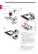 ASSEMBLING AND PREPARING ENG ENGLISH Only 32/37/42/47LT36** 1 3 M4 x 14 4 EA Stand Body M4X20 Front Stand Base Top View M4 x 14 2 4 EA CAUTION When attaching the stand to the TV yy set, place the screen facing down on a cushioned table or flat surface to protect the screen from scratches. Make sure that the screws are inserted yy correctly and fastened securely. If they are not fastened securely enough, the TV may tilt forward after being installed.