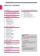 LICENSES / OPEN SOURCE SOFTWARE NOTICE 3 Supported licenses may differ by model. For more information about licenses, visit www.lg.com. Manufactured under license from Dolby Laboratories. “Dolby” and the double-D symbol are trademarks of Dolby Laboratories. HDMI, the HDMI logo and High-Definition Multimedia Interface are trademarks or registered trademarks of HDMI Licensing LLC. ABOUT DIVX VIDEO: DivX® is a digital video format created by DivX, LLC, a subsidiary of Rovi Corporation.