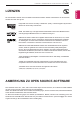 LIZENZEN / ANMERKUNG ZU OPEN SOURCE-SOFTWARE 3 Die unterstützten Lizenzen sind von Modell zu Modell verschieden. Weitere Informationen zu den Lizenzen erhalten Sie unter www.lg.com. Hergestellt unter Lizenz von Dolby Laboratories. „Dolby“ und das Doppel-D-Symbol sind Marken der Firma Dolby Laboratories. HDMI, das HDMI Logo und High-Definition Multimedia Interface sind Markenzeichen oder eingetragene Markenzeichen von HDMI Licensing LLC.