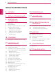 INHALTSVERZEICHNIS INHALTSVERZEICHNIS DEUTSCH 3 LIZENZEN 35 FERNBEDIENUNG 4 INSTALLATIONSVERFAHREN 37 ANPASSEN VON EINSTELLUNGEN 5 MONTAGE UND VORBEREITUNG 37 Zugriff auf die Hauptmenüs 5 8 10 11 11 13 14 15 16 Auspacken Teile und Tasten Anheben und Bewegen des TV-Geräts Einrichten des TV-Geräts - Anbringen des Standfußes - Montage auf einem Tisch - Sauberes Verlegen der Kabel - Abnehmen des Standfußes - Wandmontage 38 DAS BENUTZERHANDBUCH VERWENDEN 38 38 38 Ruft das Menü „Benutzerhand