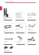 INSTALLATIONSVERFAHREN INSTALLATIONSVERFAHREN DEUTSCH 1 Öffnen Sie die Packung, und stellen Sie sicher, dass alle Zubehörteile im Lieferumfang enthalten sind. 2 Befestigen Sie den Standfuß am TV-Gerät. 3 Verbinden Sie ein externes Gerät mit dem TV-Gerät. HINWEIS Ihr TV-Gerät kann von der Abbildung möglicherweise leicht abweichen. yy Das OSD-Menü (am Bildschirm angezeigtes Menü) Ihres TV-Geräts kann sich leicht von dem in yy diesem Handbuch unterscheiden.