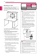 ASSEMBLING AND PREPARING WARNING Using the Kensington security system The Kensington security system connector is located at the back of the Monitor set. For more information of installation and using, refer to the manual supplied with the Kensington security system or visit http://www.kensington.com . Connect the Kensington security system cable between the Monitor set and a table. Do not touch or press the screen when adjusting the angle of the monitor. Do not hold this set like below picture.