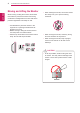 ASSEMBLING AND PREPARING Moving and Lifting the Monitor ENGLISH ENG When moving or lifting the monitor, follow these instructions to prevent the monitor from being scratched or damaged and to ensure safe transportation regardless of its shape or size. It is advisable to place the monitor in the yy original box or packing material before attempting to move it. Before moving or lifting the monitor, disconyy nect the power cord and all cables. Hold the top and bottom of the monitor frame yy firmly.