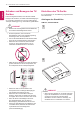 MONTAGE UND VORBEREITUNG DEUTSCH Sauberes Verlegen der Kabel (Nur 19MN43*, 24/27MT46*) 1 Bündeln Sie die Kabel, und binden Sie sie mit dem beigefügten Kabelclip zusammen. 2 Platzieren Sie das Kabel am Haken des Standfußsockels.