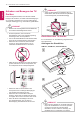 MONTAGE UND VORBEREITUNG Detaching the Stand2 DEUTSCH 19MN43*, 24/27MT46* VORSICHT 1 yyWenn Sie den Ständer am TV-Gerät anbringen, legen Sie den Bildschirm nach unten gerichtet auf einen Tisch oder eine andere flache Oberfläche mit einer weichen Unterlage, um den Bildschirm vor Verkratzen zu schützen. VORSICHT yy Tragen Sie das TV-Gerät nicht verkehrt herum am Standkörper (oder Standfuß), da es sich sonst lösen und beschädigt werden bzw. zu Verletzungen führen kann.