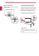 MONITORA IZMANTOŠANA 11 Pievienošana austiņu portam Lai lietotu skārienekrānu, pievienojiet USB portu datoram. Izmantojiet USB 2.0 kabeli ar A-B tipu, lai savienotu datoru. (Tam nav USB centrmezgla funkcijas.) Izmantojiet austiņu portu, lai monitoram pievienotu perifērijas ierīci. Pievienojiet, kā parādīts attēlā. D-SUB OUT (jāpērk atsevišķi) H/P UP USB UP HDMI 2 HDMI 1 D-SUB IN H/P USB UP HDMI 2 HDMI 1 D-SUB IN PIEZĪME Perifērijas ierīces jāiegādājas atsevišķi.