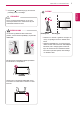 MONTĀŽA UN SAGATAVOŠANA 3. Nospiediet (barošanas poga), kas atrodas UZMANĪBU! PIEZĪME 25 25 Pirms monitora pārvietošanas uz citu vietu atvienojiet strāvas vadu. Citādi varat saņemt elektriskās strāvas triecienu. BRĪDINĀJUMS Lai ekrāna regulēšanas laikā netraumētu pirkstus, neturiet statīva apakšdaļu, kā parādīts attēlā tālāk. Monitora leņķa regulēšanas laikā nepieskarieties ekrānam un nespiediet to. Neturiet ierīci, kā parādīts attēlā tālāk.