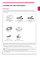 ASSEMBLING AND PREPARING 3 ASSEMBLING AND PREPARING Check your product box for the following items. If there are any missing accessories, contact the local dealer where you purchased your product. The illustrations in this manual may differ from the actual product and accessories. CD(Owner's Manual) / Card Power Cord Audio Cable ( Depending on the country ) DVI-D Cable D-SUB Cable (This cable is not included in all (This cable is not included in all countries.) countries.