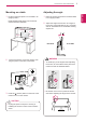 ASSEMBLING AND PREPARING Detaching the stand base Attaching the Stand Base 1 Place the monitor's screen face down. 1 Place the Monitor set with the screen side To protect the screen from scratches, cover the surface with a soft cloth. down on a flat and cushioned surface. CAUTION To protect the screen from scratches, cover yy the surface with a soft cloth. 2 Using a coin, turn the screw in the stand base counterclockwise. Detach the stand base from the stand body.