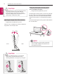ASSEMBLING AND PREPARING Please note the following advice to prevent the TV from being scratched or damaged and for safe transportation regardless of its type and size. CAUTION yy Avoid touching the screen at all times, as this may result in damage to the screen. Setting up the TV ENGLISH ENG Lifting and moving the TV Image shown may differ from your TV. Attaching the Stand 1 yy It is recommended to move the TV in the box or packing material that the TV originally came in.