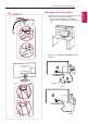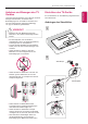 MONTAGE UND VORBEREITUNG Lesen Sie folgende Hinweise, bevor Sie das TVGerät bewegen oder anheben, um Kratzer oder Beschädigungen am TV-Gerät zu verhindern und um einen reibungslosen Transport unabhängig von Typ und Größe zu gewährleisten. VORSICHT Einrichten des TV-Geräts Ihr TV-Gerät kann von der Abbildung möglicherweise leicht abweichen. Anbringen des Standfußes 1 yy Berühren Sie nach Möglichkeit nicht den Bildschirm, da er dadurch beschädigt werden könnte.