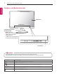MONTAGE UND VORBEREITUNG DEUTSCH ENG Gehäuse und Bedienelemente Bildschirm Lautsprecher Fernbedienungssensor Betriebsanzeige yy Rot: Wenn die Stromzufuhr unterbrochen ist yy Aus: Wenn das Gerät eingeschaltet ist yy Gelb: Wenn sich das Gerät im Stromspar Modus befindet. Drucktasten HINWEIS yy Alle Tasten lassen sich durch einfache Berührung mit dem Finger bedienen. Die Drucktasten zum Ein-/Ausschalten und zur Steuerung befinden sich auf der Unterseite.
