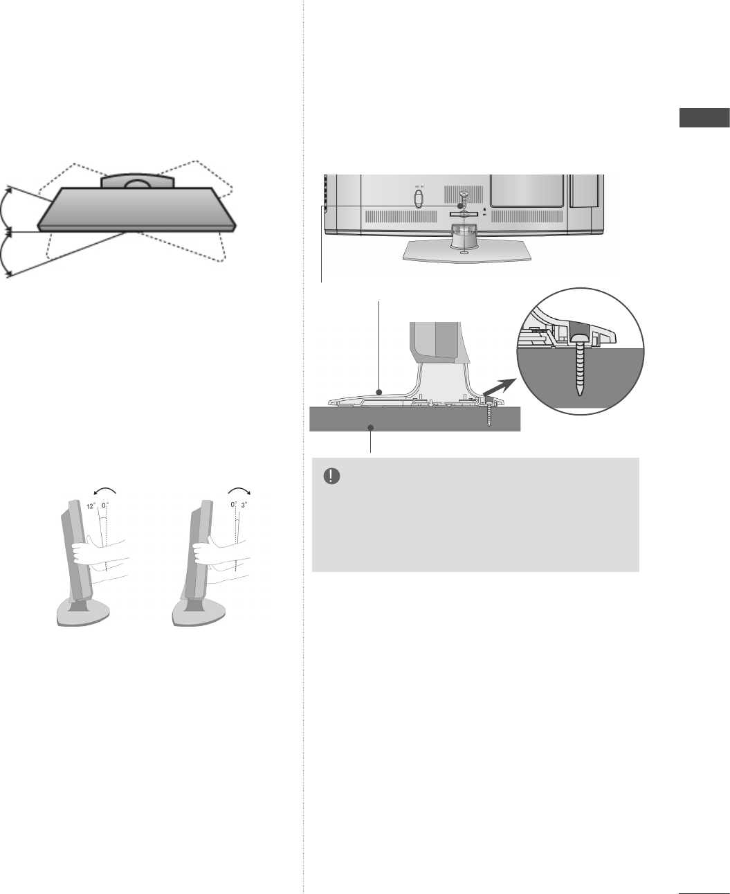 ►To prevent TV from falling over, the TV