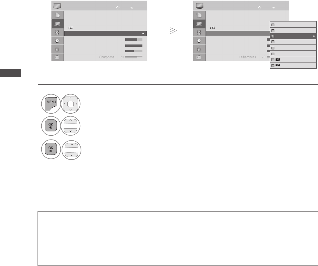 • Picture Mode adjusts the TV for the best picture appearance. Select the preset value in the