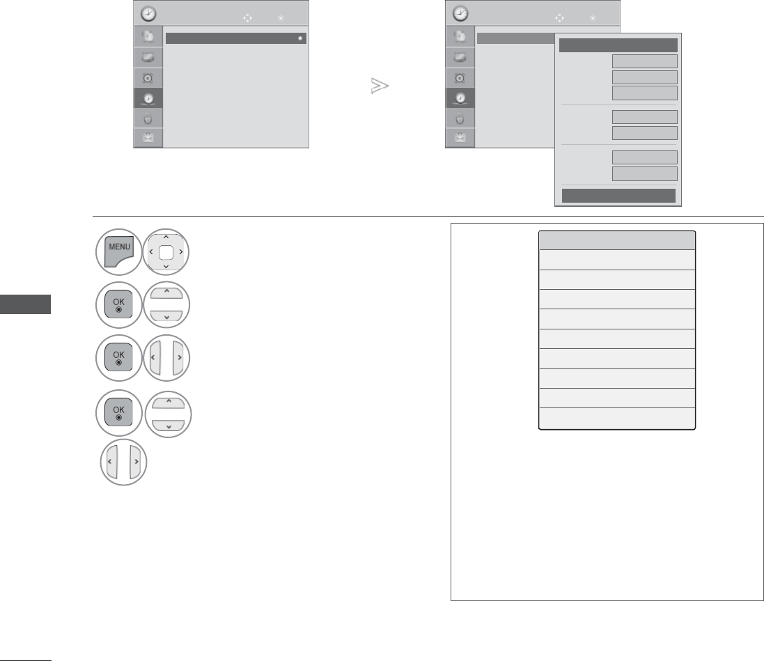 The TV time is set by the time offset information based on Time Zone and GMT (Greenwich Mean