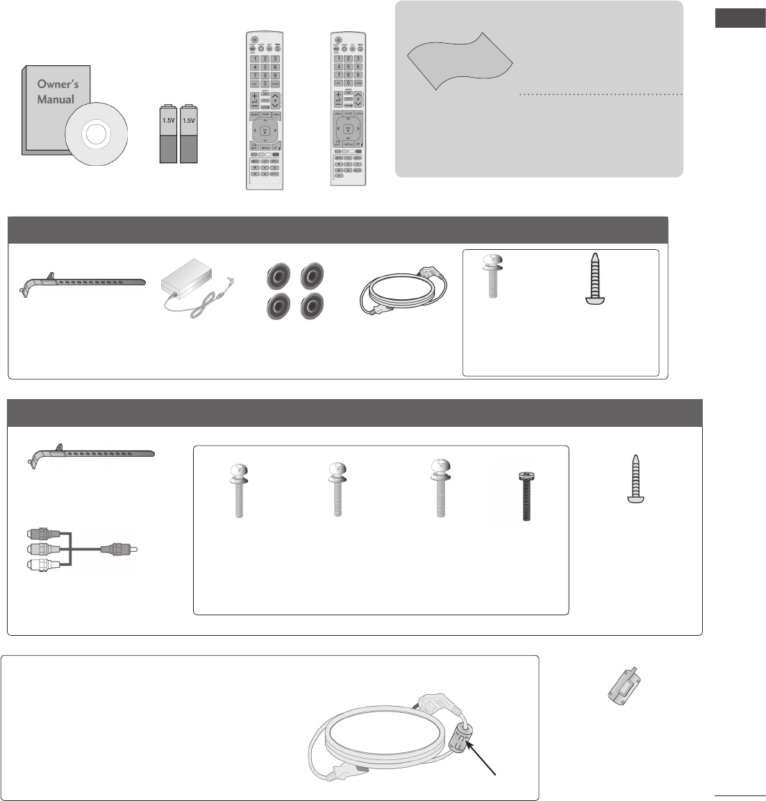 Ensure that the following accessories are included with your TV. If an accessory is missing, please