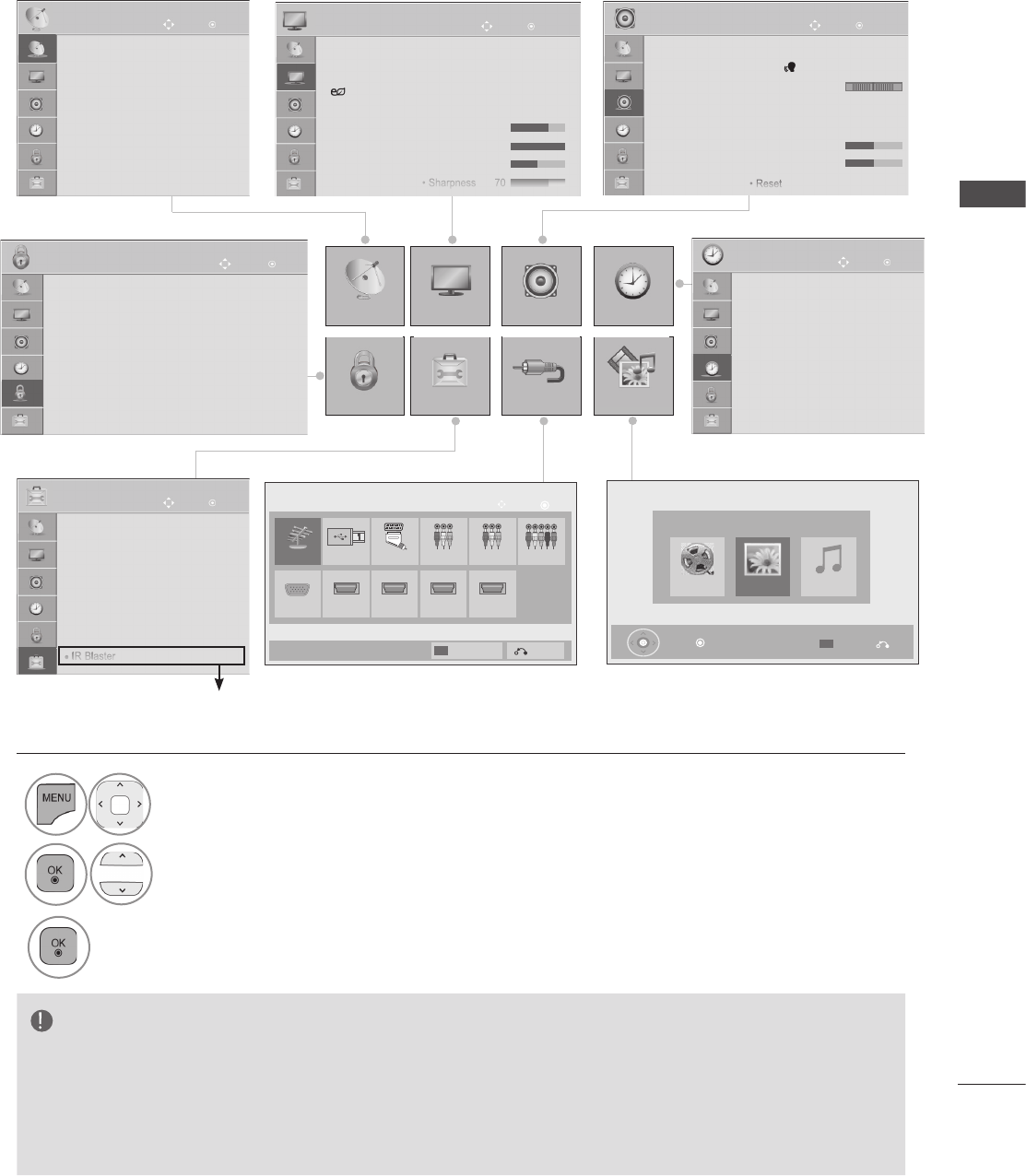 ON SCREEN MENUS SELECTION AND ADJUSTMENT
