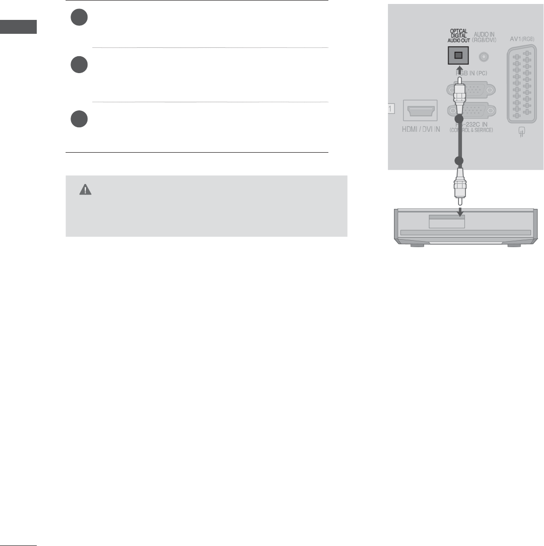 Lai nosttu TV aparta skau uz rju skaas aprkojumu caur Digitlo Audio Izejas (Optisko) ligzdu.