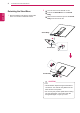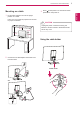 ASSEMBLING AND PREPARING Mounting on a wall Model 27EA33V VESA (A x B) Standard screw Number of screws 100 x 100 M4 4 CAUTION 10 cm 10 cm 10 cm 10 cm If you intend to mount the Monitor set to a wall, attach Wall mounting interface (optional parts) to the back of the set. When you install the Monitor set using a wall mounting interface (optional parts), attach it carefully so it will not drop. 1 Please, Use the screw and wall mount interface in accordance with VESA Standards.