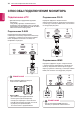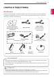 СБОРКА И ПОДГОТОВКА РУССКИЙ RUS Отсоединение основания стойки 27EA53VQ 1 Положите монитор экраном вниз на плоскую 1 С помощью монеты повернуть винт влево. и мягкую поверхность. 2 Отсоединить Основание от Стойку. 3 Извлечь два винта и отсоединить Стойку от монитора. 2 22EA53VQ/23EA53VQ/24EA53VQ 1 Отсоединить Стойку и Основание от монитора. 2 С помощью монеты повернуть винт влево. 3 Снять Основание.