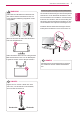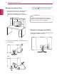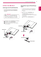 MONTAGE UND VORBEREITUNG Aufbau des Monitors 1 Legen Sie den Monitor mit dem Bildschirm 1 Legen Sie den Monitor mit dem Bildschirm nach unten auf einer ebenen, gepolsterten Fläche ab. nach unten auf einer ebenen, gepolsterten Fläche ab. 2 1 Ziehen Sie den Standkörper und Ständerplatte vom Monitor aus. VORSICHT 2 Drehen Sie die Schraube mit einer Münze Legen Sie eine Schaumstoffmatte oder ein weiches Tuch darunter, um den Bildschirm vor Beschädigungen zu schützen. nach links.