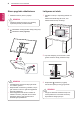 SURINKIMAS IR PARUOŠIMAS Kampo reguliavimas ĮSPĖJIMAS LIETUVIŲ LT K. 1 Pastatykite monitorių ant sumontuoto stovo pagrindo. 2 Reguliuokite ekrano kampą. Ekranas gali būti pakreiptas į priekį ir atgal nuo -5° iki 15°, kad būtų patogu į jį žiūrėti. 15 Galinė pusė -5 Priekinė pusė ĮSPĖJIMAS Kad reguliuodami ekraną nesusižeistumėte pirštų, nelaikykite apatinės monitoriaus rėmo dalies (kaip parodyti toliau). Nelieskite ir nespauskite ekrano, kai reguliuojate monitoriaus kampą.