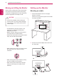 ASSEMBLING AND PREPARING ENGLISH ENG Moving and Lifting the Monitor Setting up the Monitor When moving or lifting the monitor, follow these instructions to prevent the monitor from being scratched or damaged and to ensure safe transportation regardless of its shape or size. Mounting on a table CAUTION 1 Lift and tilt the Monitor set into its upright position on a table. Leave a 10 cm (minimum) space from the wall for proper ventilation. As much as possible, avoid touching the yy monitor screen.