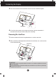Connecting the Display 3. Use a coin on the back of the stand base and turn the screw clockwise to tighten. stand Base 4. Lift and turn the monitor to face towards the front after the connection is made to the female part of the cable you're attaching. Removing the stand base 1. Place the monitor with its front facing downward on a cushion or soft cloth. 2. When you desire to disintegrate the monitor from the stand base, use a coin to turn the screw counterclockwise.