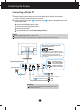 Connecting the Display Connecting with the PC 1. Before setting up the monitor, ensure that the power to the monitor, the computer system, and other attached devices is turned off. and power cord of the signal cable. A Connect DVI-D(Digital signal) Cable B Connect D-sub(Analog signal) Cable C Connect Audio Cable 2. Connect signal input cable 1 2 in order, then tighten the screw D Connect DisplayPort Cable (Separate purchase) NOTE This is a simplified representation of the rear view.