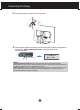Connecting the Display 3. Use a coin on the back of the stand base and turn the screw clockwise to tighten. stand Base 4. Lift and turn the monitor to face towards the front after the connection is made to the female part of the cable you're attaching. Removing the stand base 1. Place the monitor with its front facing downward on a cushion or soft cloth. 2. When you desire to disintegrate the monitor from the stand base, use a coin to turn the screw counterclockwise.