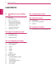 TABLE OF CONTENTS CONTENTS ENGLISH ENG 3 ASSEMBLING AND PREPARING 23 TROUBLESHOOTING 3 Unpacking 4 Parts and buttons 25 SPECIFICATIONS 5 Setting up the Monitor set 25 27MP35HQ 5 - Attaching the Stand Base 26 Preset Modes (Resolution) 6 - Detaching the Stand Base 26 Indicator 7 - Mounting on a table 7 - Using the cable holder 9 - Mounting on a wall 27 PROPER POSTURE 27 Proper posture for using the Monitor set.