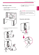 ASSEMBLING AND PREPARING Mounting on a wall Model 27MP35HQ VESA (A x B) Standard screw Number of screws 100 x 100 M4 4 CAUTION 10 cm 10 cm 10 cm 10 cm If you intend to mount the Monitor set to a wall, attach Wall mounting interface (optional parts) to the back of the set. When you install the Monitor set using a wall mounting interface (optional parts), attach it carefully so it will not drop. 1 Please, Use the screw and wall mount interface in accordance with VESA Standards.