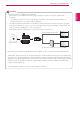 SAVIENOJUMU VEIDOŠANA HDMI savienojums PIEZĪME Izmantojiet High Speed HDMI™ kabeli. y High Speed HDMI™ kabeļi spēj pārraidīt 1080p un lielāku signālu. y Ja vēlaties izmantot HDMI-PC režīmu, signāla ieejas nosaukums jāiestata PC vai DVI režīmā. y Atbalstītais DTV audio formāts: MPEG, Dolby Digital. y Atbalstītais HDMI audio formāts: Dolby Digital, PCM (līdz192 KHz, 32k/44,1k/48k/88k/96k/176k/ y 192k, DTS nav atbalstīti). Savienojumam izmantojiet jebkuru HDMI ieejas portu.