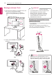 MONTAGE UND VORBEREITUNG DEUTSCH ENG Einrichten des TV-Geräts 3 Ihr TV-Gerät kann von der Abbildung möglicherweise leicht abweichen. Anbringen des Standfußes 1 VORSICHT yy Wenn Sie den Ständer am TV-Gerät anbringen, legen Sie den Bildschirm nach unten gerichtet auf einen Tisch oder eine andere flache Oberfläche mit einer weichen Unterlage, um den Bildschirm vor Verkratzen zu schützen.