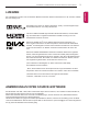 Lizenzen / ANMERKUNG ZU OPEN SOURCE-SOFTWARE 3 Die unterstützten Lizenzen sind von Modell zu Modell verschieden. Weitere Informationen zu den Lizenzen erhalten Sie unter www.lg.com. Hergestellt unter Lizenz von Dolby Laboratories. „Dolby“ und das Doppel-D-Symbol sind Warenzeichen von Dolby Laboratories. The terms HDMI and HDMI High-Definition Multimedia Interface, and the HDMI logo are trademarks or registered trademarks of HDMI Licensing LLC in the United States and other countries.