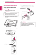 SURINKIMAS IR PARUOŠIMAS 9 3 Stovo pagrindą įstatykite į stovo korpuso angą. 29EB73 LT K. LIETUVIŲ 1 Padėkite monitorių ekranu į apačią. DĖMESIO Norėdami apsaugoti ekraną nuo įbrėžimų, yy apdenkite paviršių minkštu audeklu. Stovo pagrindas 2 Pritvirtinkite stovo korpusą prie monitoriaus, sulygiuodami jį su tvirtinimo varžtų angomis, tada įsukite du varžtus į angas, kad stovo korpusas ir monitorius būtų sujungti. Stovo korpusas Stovo korpusas 4 Priveržkite jį moneta pasukdami varžtą į dešinę.
