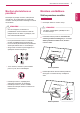 MONTĀŽA UN SAGATAVOŠANA Leņķa regulēšana BRĪDINĀJUMS piestipriniet statīva pamatnei. 2. Noregulējiet ekrāna leņķi. Lai nodrošinātu vislabāko ekrāna redzamību, to iespējams noliekt uz priekšu un atpakaļ no -5° līdz 20°. Lai ekrāna regulēšanas laikā netraumētu pirkstus, neturiet monitora rāmja apakšdaļu, kā parādīts apakšējā attēlā. 29EA93 29EA93 -5 Aizmugure Priekšpuse 29EB93 29EB93 20 -5 Monitora leņķa regulēšanas laikā nepieskarieties ekrānam un nespiediet to.
