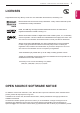 LICENSES / OPEN SOURCE SOFTWARE NOTICE 3 Supported licenses may differ by model. For more information about licenses, visit www.lg.com. Manufactured under license from Dolby Laboratories. “Dolby” and the double-D symbol are trademarks of Dolby Laboratories. HDMI, the HDMI logo and High-Definition Multimedia Interface are trademarks or registered trademarks of HDMI Licensing LLC. ABOUT DIVX VIDEO: DivX® is a digital video format created by DivX, LLC, a subsidiary of Rovi Corporation.