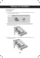Montage des Standfußes - Nur bei bestimmten Modellen. < 32VS10MS > 1. Nehmen Sie die Teile des Standfußes aus der Verpackung und setzen Siedie Teile wie in der Abbildung gezeigt zusammen. Teile Überprüfen Sie zunächst, ob folgende Teile vollständiggeliefert wurden. Standfuß (2) Schrauben (4) 2. Breiten Sie ein weiches Tuch auf einem Tisch aus und legen Sie denFernseher mit dem Bildschirm nach unten auf dem Tuch ab. Bringen Sie denStandfuß wie in der folgenden Abbildung gezeigt an. 3.