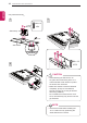 ASSEMBLING AND PREPARING ENG ENGLISH Only 32/37/42/47LT36** 1 3 M4 x 14 4 EA Stand Body M4X20 Front Stand Base Top View M4 x 14 2 4 EA CAUTION When attaching the stand to the TV yy set, place the screen facing down on a cushioned table or flat surface to protect the screen from scratches. Make sure that the screws are fastened yy completely. (If they are not fastened securely enough, the TV may tilt forward after being installed.