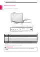 СБОРКА И ПОДГОТОВКА К РАБОТЕ ENG РУCCKИЙ Элементы и кнопки Только для 32/42/47LS669*, 42/47/55LM610* Экран Пульт ДУ и интеллектуальные датчики1 Индикатор питания Динамики Сенсорные кнопки2 OK kнопки SETTINGS INPUT Описание Прокрутка по списку сохраненных каналов. Настройка громкости. H OK Выбор подсвеченного пункта меню или подтверждение ввода. SETTINGS Переход в главное меню или сохранение введенных данных и выход из меню. INPUT Изменение источника входного сигнала.