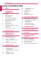 INHALTSVERZEICHNIS DEUTSCH INHALTSVERZEICHNIS 3 LIZENZ 4 MONTAGE UND VORBEREITUNG 4 5 7 8 8 9 13 Zubehör Optionales Zubehör Teile und Tasten Anschließen des Standfußes Anschließen der Lautsprecher Anschließen des IR- und Lichtsensors Portrait Layout Verbinden des OPS Anbringung und Entfernung der LGLogohalterung Installation an einer Wand 15 FERNBEDIENUNG 17 HERSTELLEN VON VERBINDUNGEN 17 18 20 21 22 Anschluss eines PCs Anschluss externer Geräte Verketten von Monitoren - Nutzen der Mehrfach